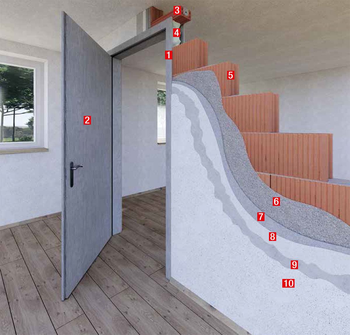 Detail osadenia obkložkovej zárubne v murovanej priečke
