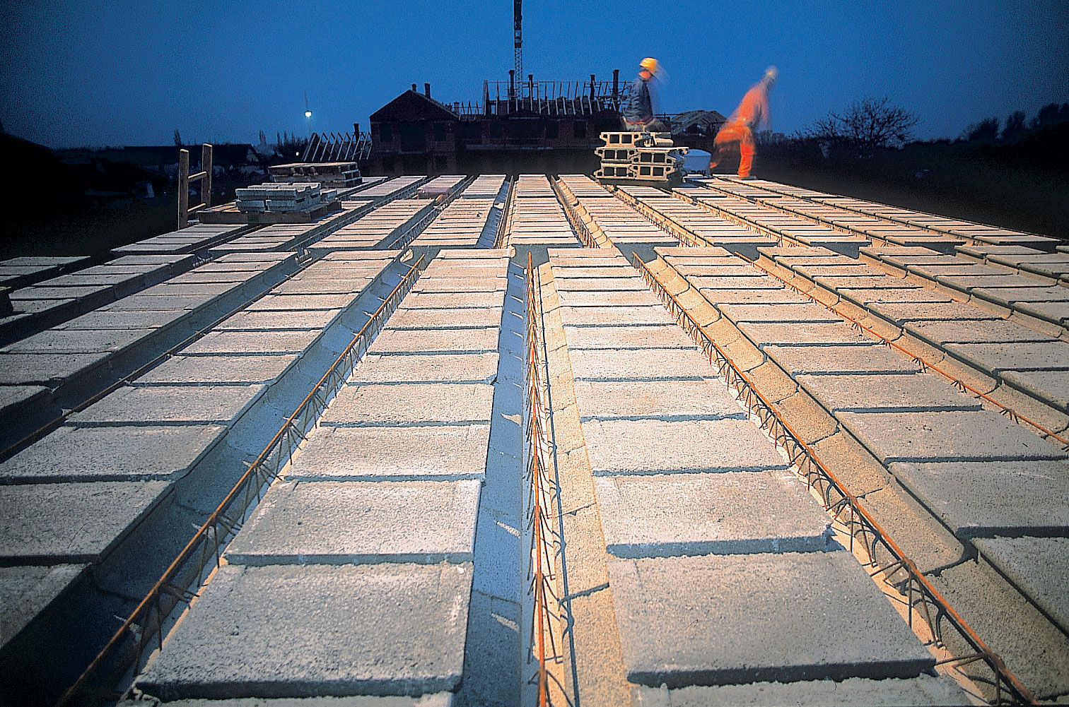 Montáž stropu z betónových trámov a stropných tvaroviek (Pracovný postup)