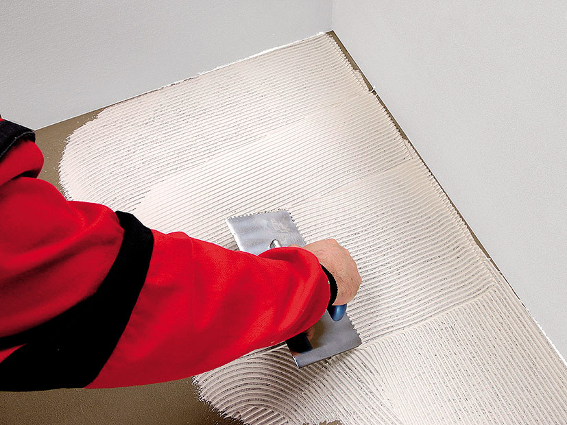 - Lepenie podlahovín (PVC, PVC s textilnou podložkou, textilné podlahové povlaky, nelakovaný korok a pod.), kobercov na podklady (betón, stena, omietka, sadra, anhydrit, drevotrieskové, drevovláknité a cementotrieskové dosky); materiálov na báze drevnej hmoty, polystyrénu, polyuretánu.