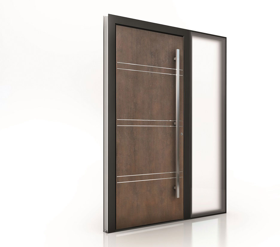 Internorm hliníkové vchodové dvere AT410 imitácia hrdze s plošne lícujúcim svetlíkom 1000x1000