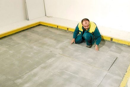 Cementotrieskové dosky sa začínajú ukladať oproti dverám, a to najskôr celou doskou. Kladú sa na zraz s krížovou škárou. Pred kladením by sa mali aklimatizovať v miestnosti – asi 48 hodín pri vlhkosti vzduchu maximálne 70 %. Je potrebné dbať na to, aby sa škáry izolačných a podlahových dosiek nenachádzali nad sebou.