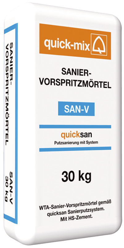Jednovrstvová, síranom odolná bielosivá sanačná omietka na vlhkosťou a soľami zaťažené murivo. Omietka spĺňa požiadavky smernice WTA 2-9-04 na vlastnosti sanačných omietok. Hrúbka vrstvy v jednom kroku ≤ 30 mm. Vodoodpudivá, bez zníženia paropriepustnosti. Hodí sa na vonkajšie aj vnútorné použitie. Má vysokú schopnosť ukladať soli. Pod vrstvu sanačnej omietky treba aplikovať minerálny sanačný postrek, ktorý je súčasťou certifikovaného sanačného systému quicksan. Slúži na vytvorenie kotviacej vrstvy na vlhkosťou a soľami zaťažené murivo.