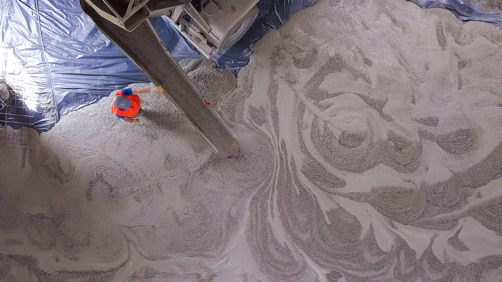 Aplikácia betónovej zmesi a jej spracovanie technológiou LaserScreed (Laserom navádzané zariadenie na zarovnanie a zavibrovanie betónovej zmesi.)