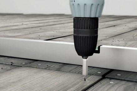 Náradie: akumulátorový skrutkovač, pneumatická sponkovačka, oceľová sťahovacia lata, vodováha, nôž na rezanie kobercov, ručná okružná píla, pílový kotúč z tvrdokovu, škrabka na lepidlo, špachtľa alebo dláto