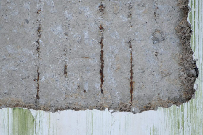 Obr. 6 Podrobnosť sondy v kupole viditeľné známky korózie výstuže a zatekanie