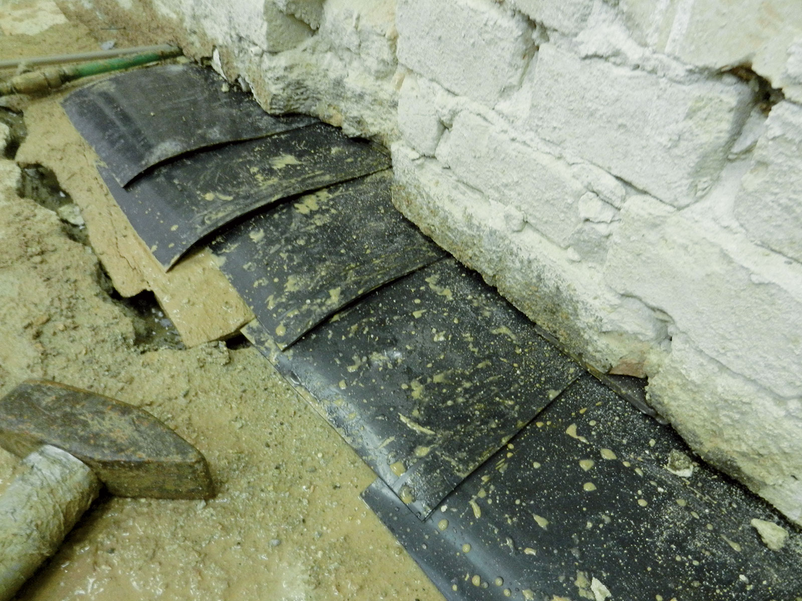 Obr. 4 Izolačné pásy vložené do múru v priebehu aplikácie technológie podrezávania