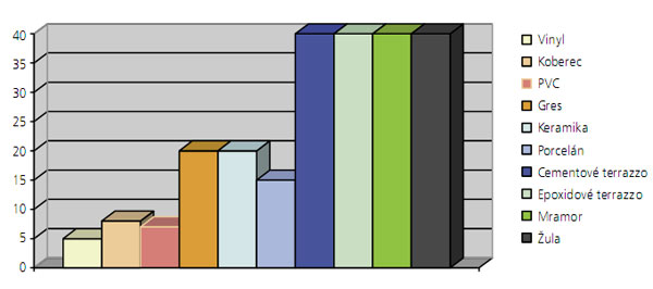 Porovnanie životnosti rôznych podlahových materiálov (v rokoch)