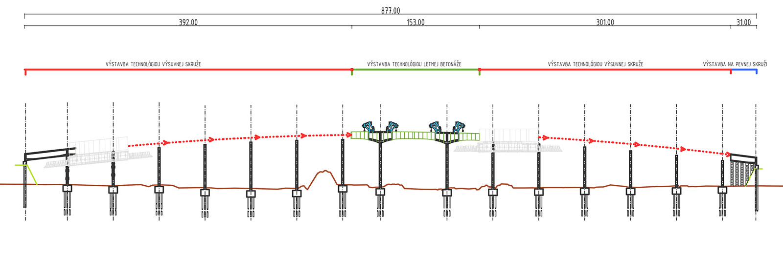 Obr. 7 Postup výstavby mosta 205 v areáli USSK