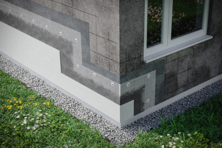 Po predvŕtaní sa profily R-UD pripevňujú plastovými natĺkacími rozperkami na obvodovú stenu vo vzájomných rozstupoch do 800 mm. Vzdialenosť prvého pripojenia od rohu miestnosti je max. 200 mm. | Zdroj: Saint-Gobain Construction Products
