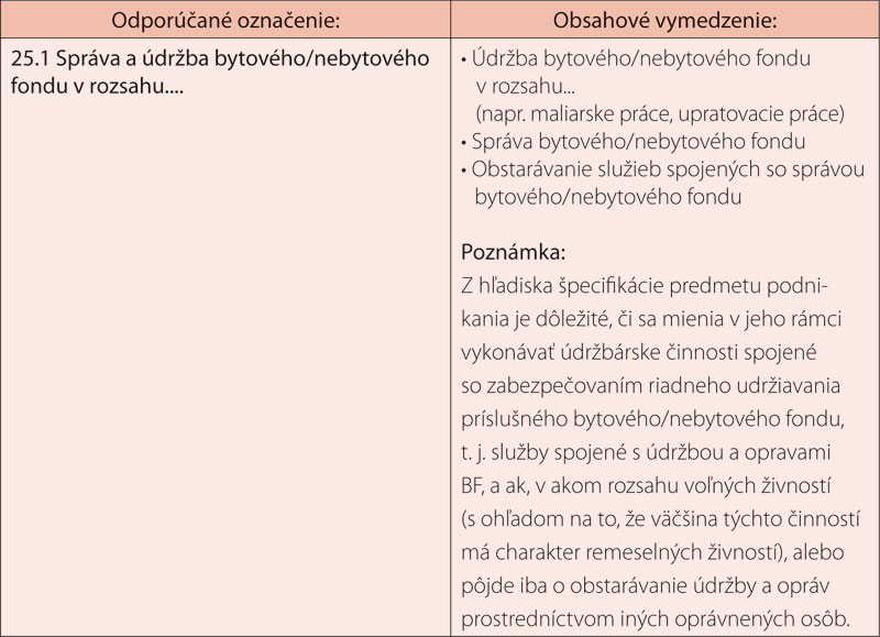 Predmet činnosti alebo podnikania – správa a údržba bytového fondu
