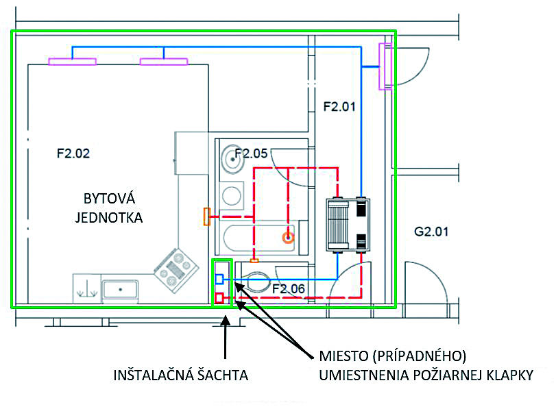 Obr. 8 Byt a inštalačná šachta ako samostatné požiarne úseky