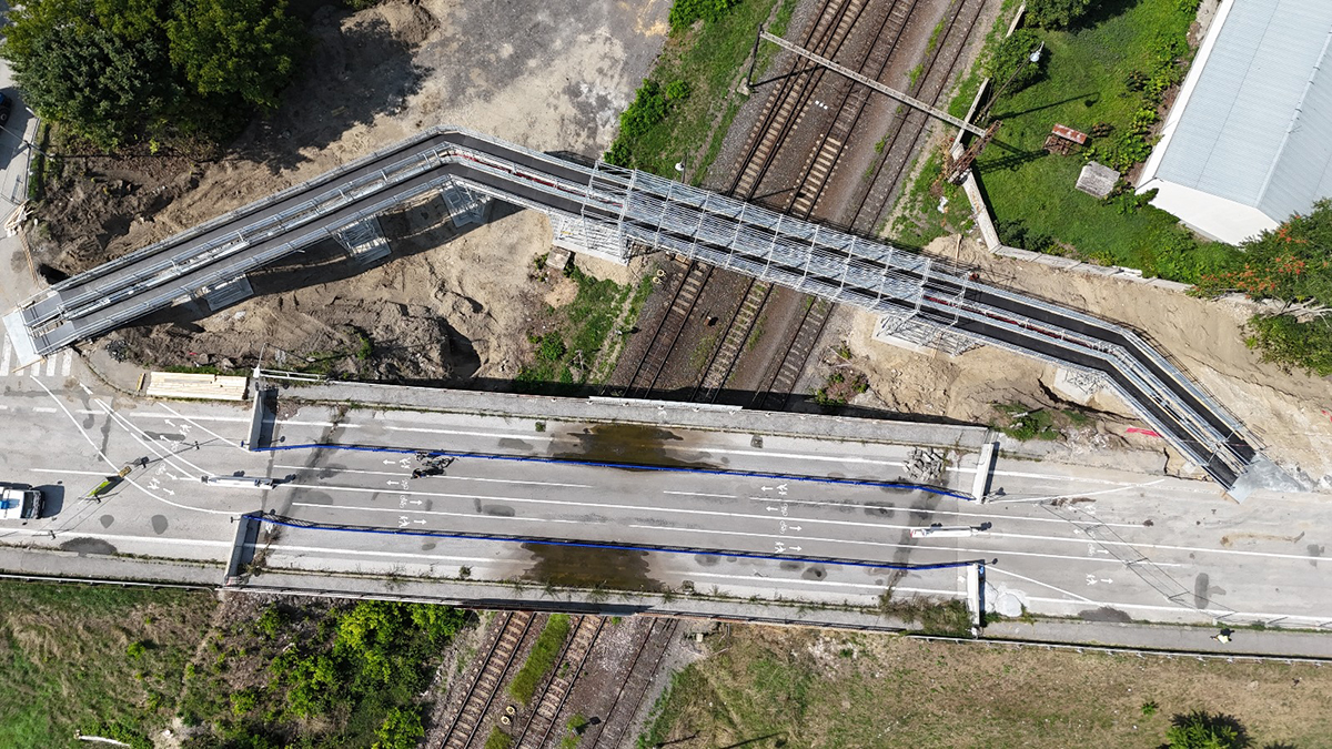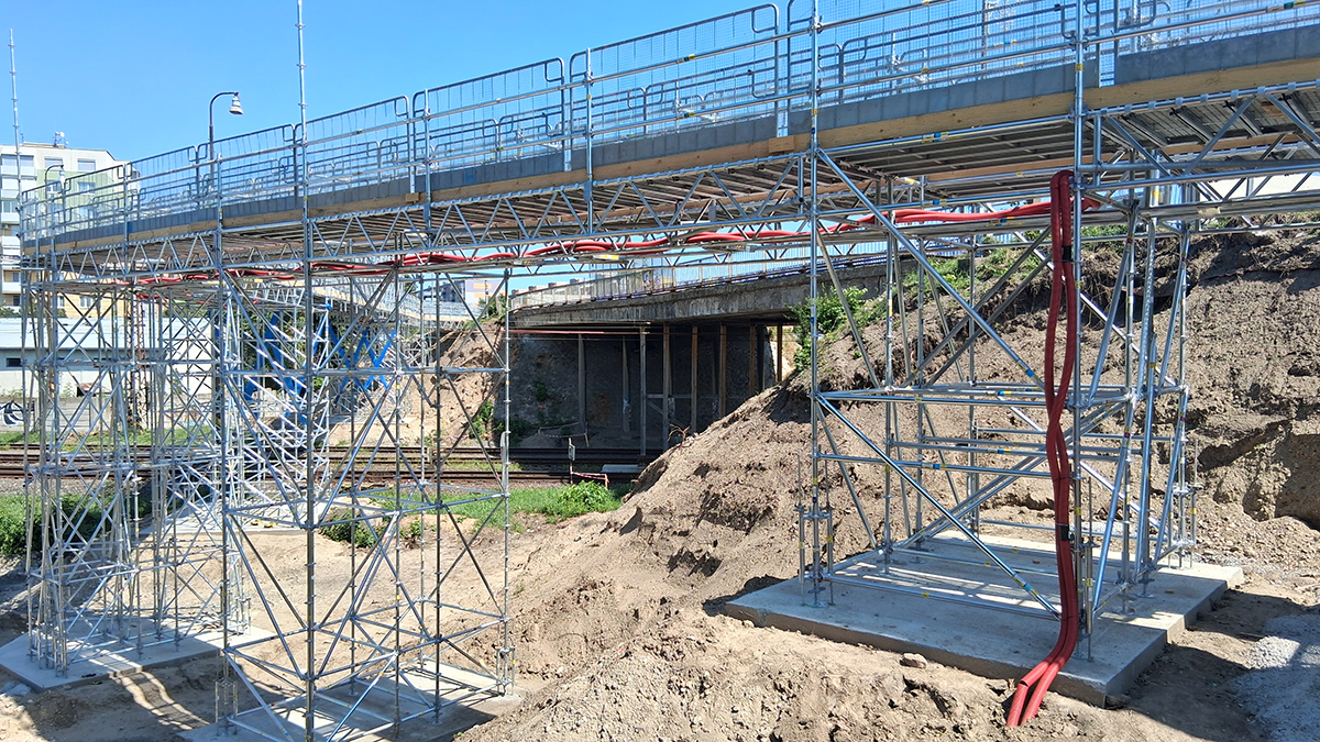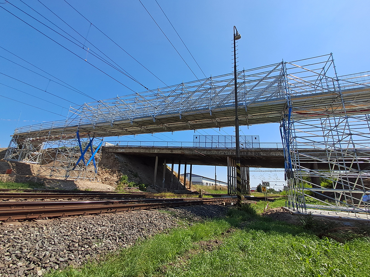 V rámci výstavby dočasnej lávky sa v maximálnej miere nasadilo modulárne lešenie Ringlock, a to ako priestorová konštrukcia s celkovou dĺžkou 80 m a so šírkou 3,5 m. Hlavné pole ponad železnicu dosahuje rozpätie až 20,5 m.