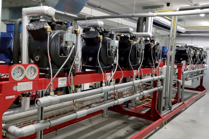 Použité tepelné čerpadlo Twineco® 2×400 R717 má chladiaci výkon 320 kW, kondenzačný výkon 440 kW a náplň chladiva R717 120 kg.