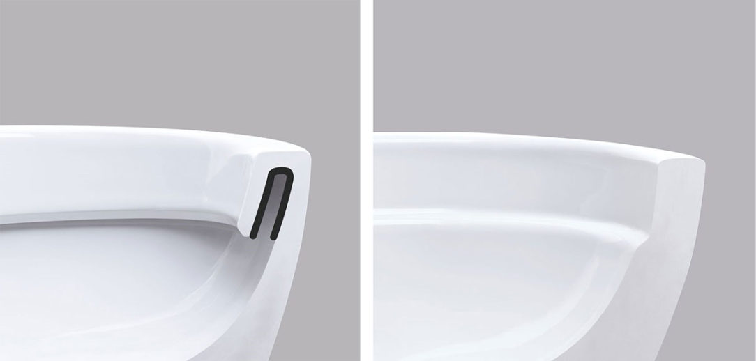 Tradičné toaletné misy sú vybavené splachovacím okrajom, ktorý počas splachovania vedie vodu tak, aby čo najlepšie opláchla misu. Zároveň sú to však miesta, ktoré sú ťažko dostupné a často ich nemožno vyčistiť ani pomocou špeciálnej kefy. Za splachovacím okrajom sa potom hromadí vodný kameň, nečistoty a baktérie.