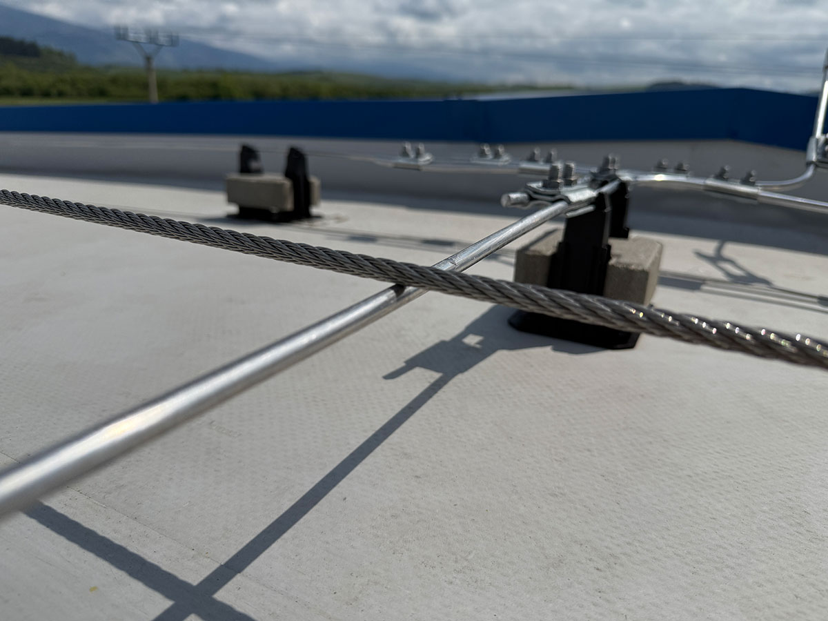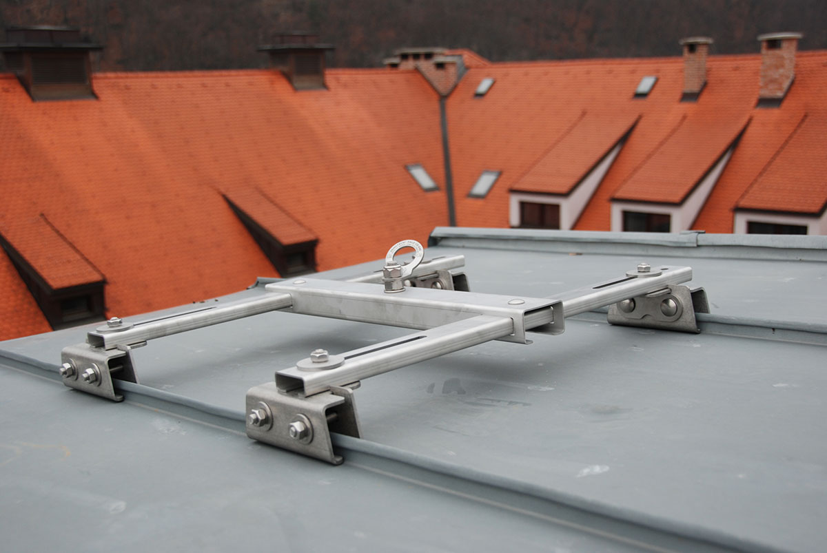 4.9.1 Strecha musí obsahovať záchytný – bezpečnostný systém za účelom upevnenia pracovníkov počas realizácie a údržby strechy. Záchytný – bezpečnostný systém navrhuje projektant. – ide o kotviace body alebo celé istiace systémy, ktoré musia byť súčasťou realizácie. Parametre kotviacich zariadení určujú STN EN 17235 Trvalé kotviace zariadenia a bezpečnostné háky a STN EN 795 Ochrana proti pádu z výšky. Kotviace zariadenia (viac na: www.industrialsafety.sk).