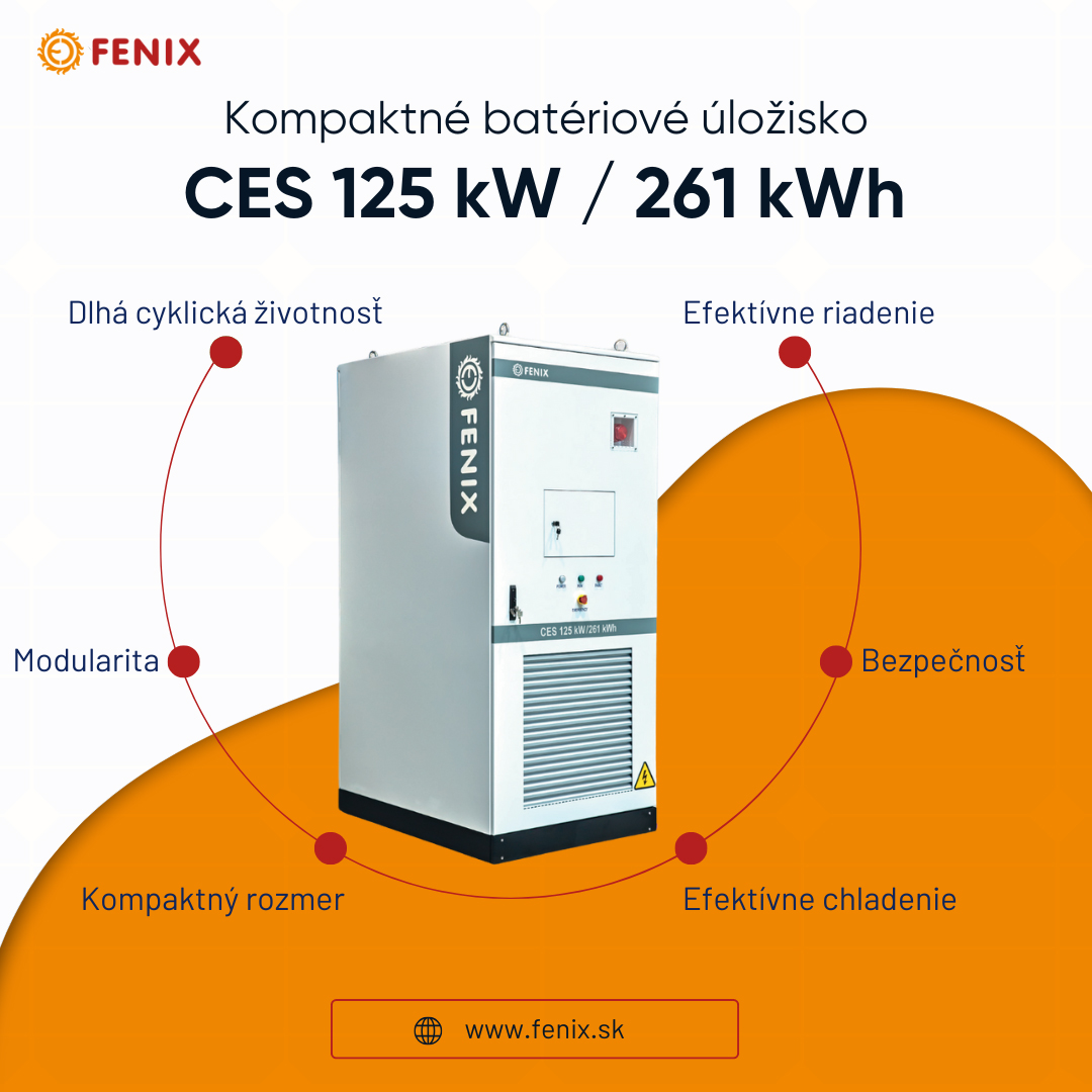 Batériové úložisko CES predstavuje kompaktné, ale výkonné riešenie s výkonom 125 kW a akumulačnou kapacitou okolo 261 kWh, ktoré je navrhnuté tak, aby vyhovovalo potrebám menších firiem, prevádzok, skladov či hotelov.