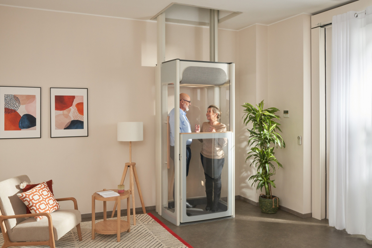 Dvere s polovičnou výškou vytvárajú otvorenú, svetlom naplnenú kabínu, ktorá pôsobí ako priestorový prvok. Pohonný systém je diskrétne umiestnený v hornej časti kabíny, pri každodennom používaní je neviditeľný a pracuje pri hluku nižšom ako 50 decibelov. Je tichší ako domáca chladnička a jednoducho sa stáva súčasťou domova.