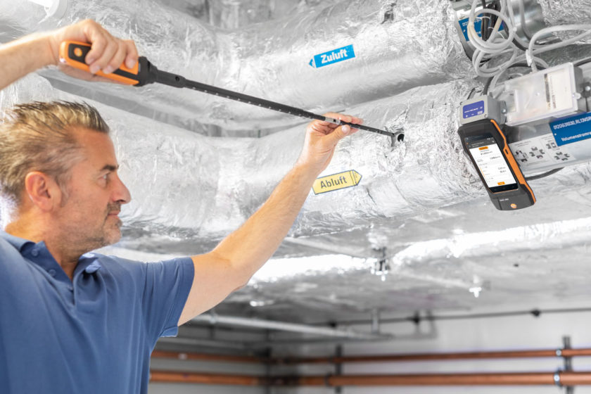 Pri meraní celkového množstva vzduchu a pri regulácii koncovej distribúcie a distribučných elementov sa uplatnia predovšetkým vrtuľková sonda (v kombinácii s prístrojom testo 440) a po novom aj merač objemu prietoku testo 420. V oboch prípadoch je na urýchlenie merania kľúčová dostupnosť teleskopického nadstavca vrtuľkovej sondy a pri objemovom prietoku aj dlhého tubusu, čo umožňuje merať z podlahy alebo z nízkych schodíkov.