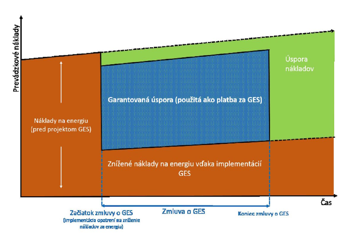 Každý objekt vykazuje ročnú spotrebu a náklady na energiu, ktoré možno znížiť aplikovaním GES. Na začiatku sú podpísanie zmluvy o GES medzi prijímateľom a poskytovateľom (obr. 1) a vypracovanie energetickej analýzy, ktorá opisuje najmä súčasný stav objektu.