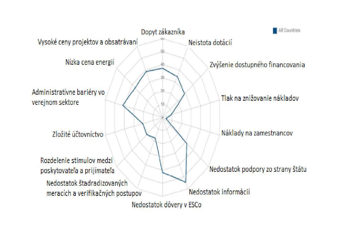 Podľa projektu QualitEE, zameraného okrem iného na hlavné prekážky využitia GES, patria medzi najväčšie prekážky pri využívaní GES nedostatok informácií alebo nedôvera k ESCo spoločnostiam [16]. Tieto a ďalšie prekážky pri realizácii GES projektu sú znázornené na obr. 7.
