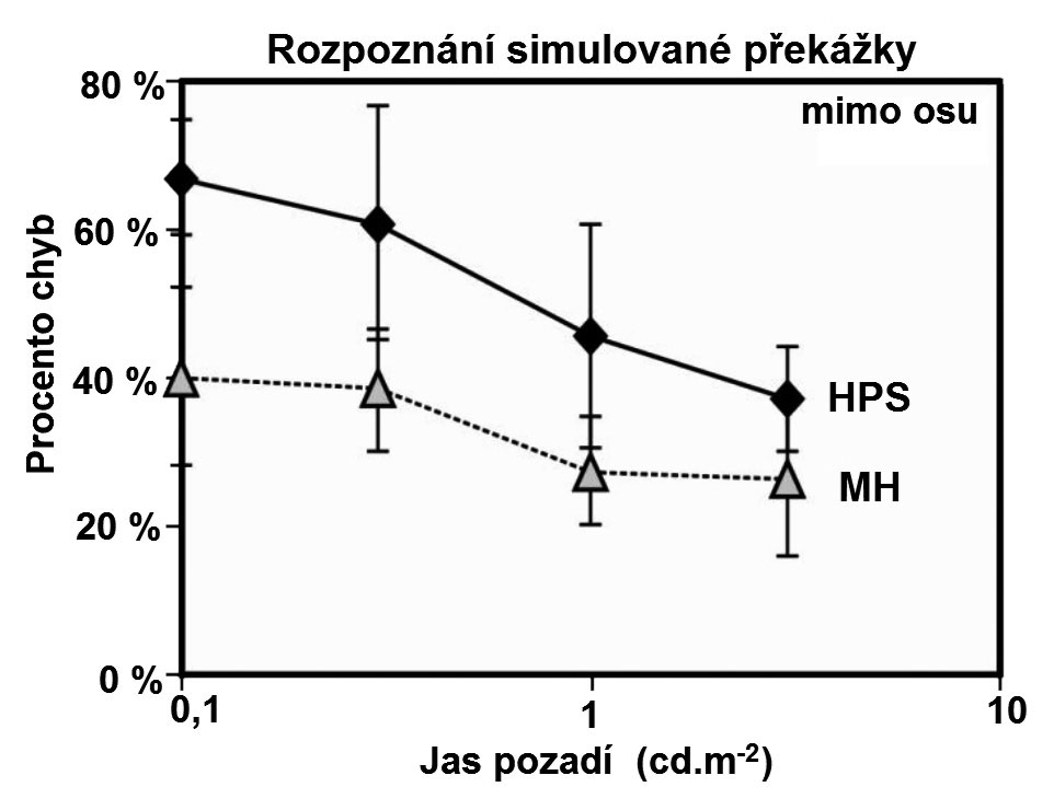 Obr. 2 Nárast počtu chýb v závislosti od farebnej teploty svetelných zdrojov