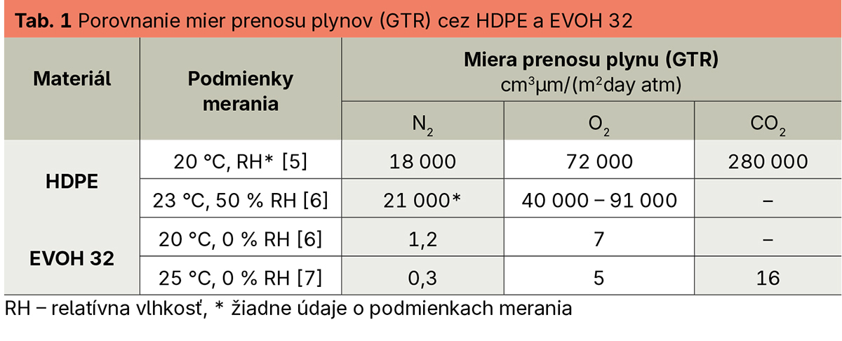 Údaje ukazujú, že miera prenosu plynu (GTR) cez EVOH je niekoľkotisíckrát nižšia ako cez HDPE. To znamená, že membrána EVOH hrubá 1 mm poskytuje rovnakú odolnosť proti prenosu plynu ako niekoľkometrová vrstva HDPE.