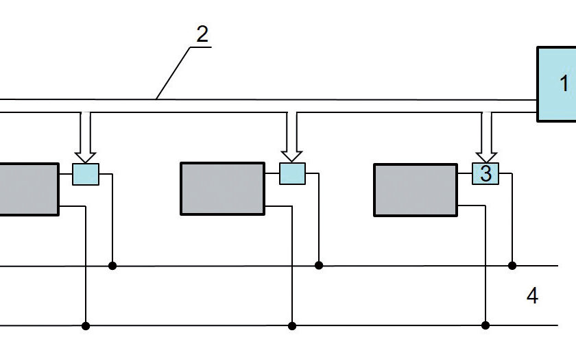 1 – centrálna riadiaca jednotka, 2 – zbernica prenosu údajov, 3 – miestny regulátor, 4 – viacúčelový okruh |
