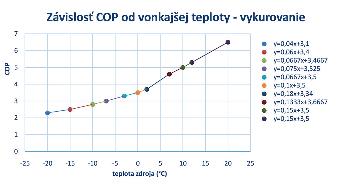 Obr. 5 Závislosť COP od vonkajšej teploty pri nízkoteplotnom vykurovaní