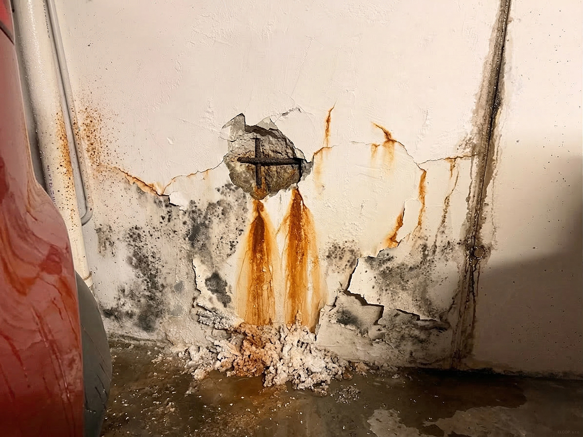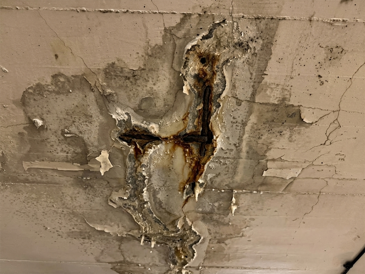 Prienik vlhkosti k oceľovej výstuži spúšťa proces korózie, ktorý zväčšuje objem ocele, čo vedie k odpraskávaniu betónu a oslabovaniu nosnej kapacity konštrukcie.