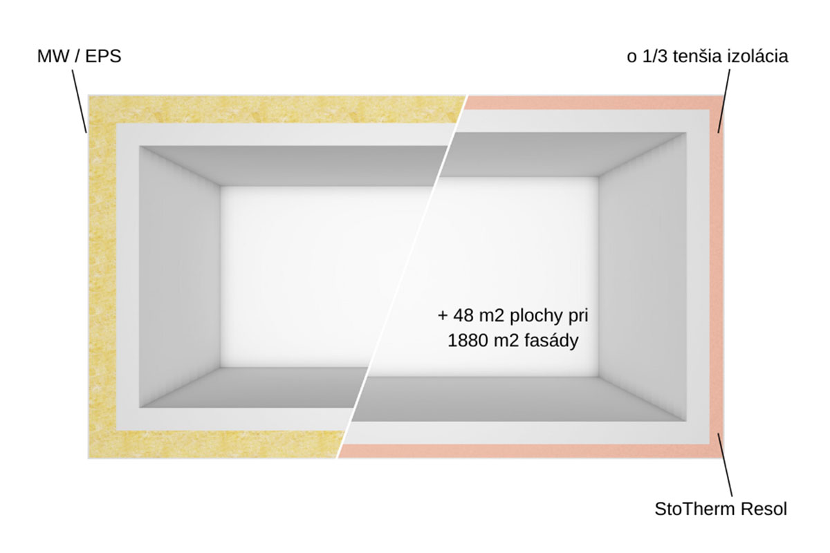 Použitie systému StoTherm Resol umožní napríklad získať pri ploche fasády 1880 m2 dodatočných 48 m2 v interiéri a tým aj dodatočný zisk.