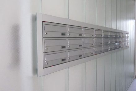 Profilové sklo sa použilo aj vo vstupných priestoroch. Sklenené tvarovky z profilového skla sa použili ako obklad železobetónových stien, ktoré oddeľujú vstupné priestory (vstupnú pasáž) od garážového státia (obr. 6 až 8). Do steny z profilového skla umiestnenej vo vstupnej hale sú osadené poštové schránky (obr. 9). Zaujímavým architektonickým prvkom tohto priestoru je aj atypická vlna z profilového skla (obr. 10 a 11).