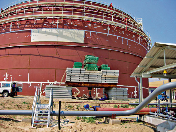 Na zaistenie potrebných úžitkových vlastností zásobníka sa investor rozhodol vykonať sanáciu základového podložia. Vyslovil však podmienku, že nesmie prísť k zásahu do konštrukcie, pri ktorom by sa narušilo oceľové dno nádrže, t. j. sanačné práce sa musia urobiť z vonkajšieho priestoru nádrže, prípadne z medzipriestoru medzi plášťom nádrže a plášťom ochrannej nádrže. Na základe prešetrenia podkladov a poznatkov sa vyznačili chyby v návrhu a vo vyhotovení základovej konštrukcie zásobníka: Betónové pilóty v základovom podloží nemôžu v žiadnom prípade plniť funkciu hlbinného základu alebo výstuhy mäkkých vrstiev – ich hlavy sa nachádzali na úrovni plochy pod poddajnou zemnou doskou a korene vôbec nedosahovali do tuhších a nosnejších vrstiev základového podložia. Poddajná zemná doska základovej konštrukcie svojou zanedbateľnou tuhosťou nemôže zaistiť rovnomerné vyrovnanie deformácií.