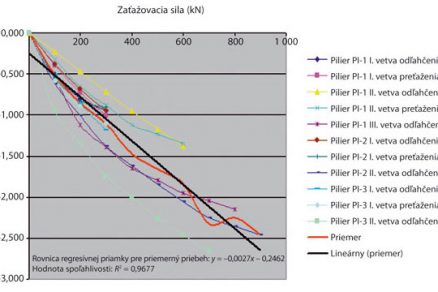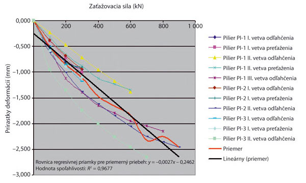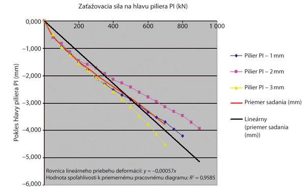 Obr. 7 Pracovný diagram pilierov PI pri zaťažovaní