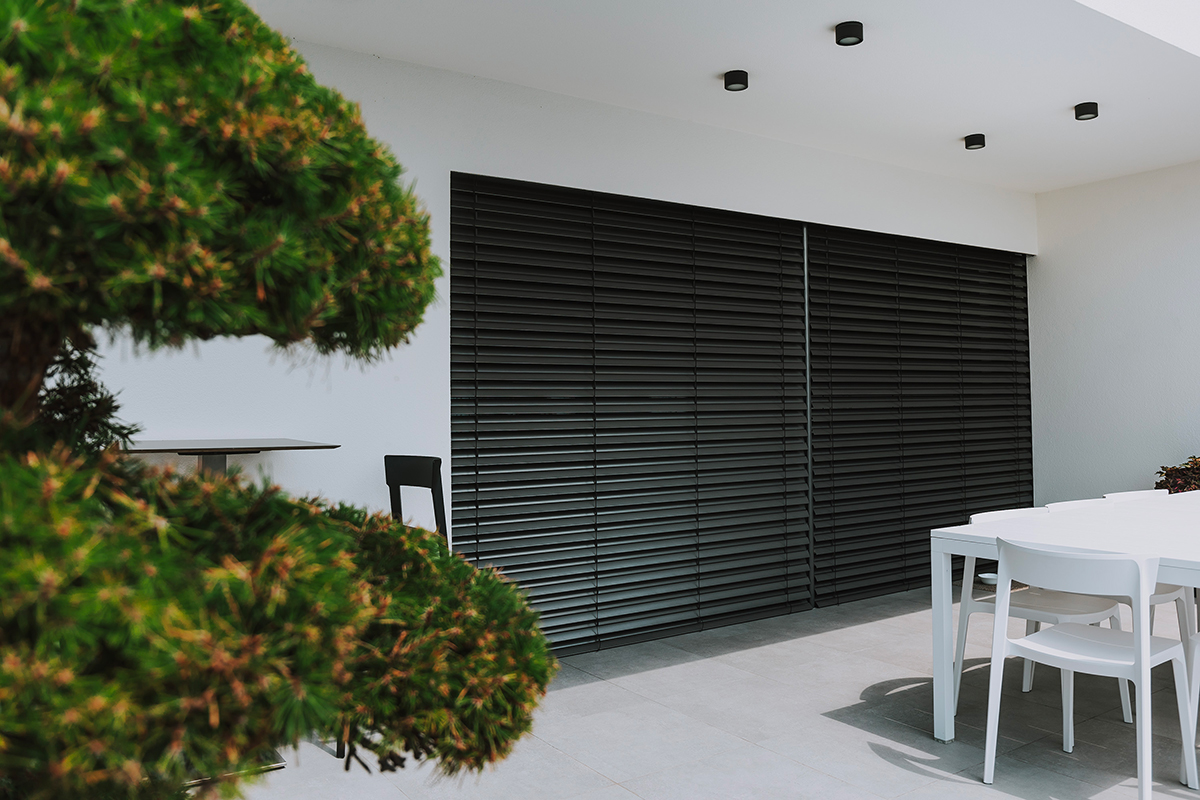 Vonkajšie žalúzie poskytujú stabilnú ochranu súkromia bez ohľadu na dennú dobu. Pri sklopených lamelách fungujú ako nepriehľadná clona.