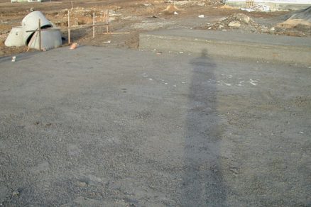 | Obr.1 Zhotovenie základovej dosky z nevhodného betónu. Nedodržal sa technologický predpis (najmä ošetrovanie betónu) a pravdepodobne ani kvalita betónovej zmesi | Obr. 2 Vymurovanie obvodového muriva z rôznych materiálov. Použili sa keramické murovacie tvárnice typu Therm, klasická plná tehla, pórobetónové murovacie prvky a betón (preklad a veniec). Táto kombinácia materiálov bude mať za následok poruchy v omietke |
