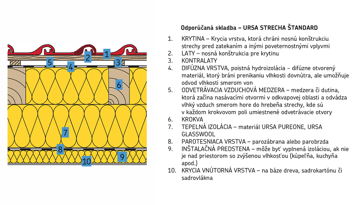 Nároky na ochranu životného prostredia sa v posledných rokoch stále sprísňujú a s tým aj pravidlá na kvalitu stavieb. Je preto nutné už na začiatku vyberať čo najkvalitnejšie materiály, ktoré prispejú k celkovej finálnej podobe novostavby či rekonštrukcie. „Vždy dbáme na správnu skladbu strechy, s ohľadom na dostatočne dimenzované zateplenie minerálnou vlnou. Dôsledne aplikovaná a vrstvená izolácia zaistí správnu funkčnosť celej konštrukcie,“ vysvetľuje Tereza Vojancová, architektka zo spoločnosti URSA.