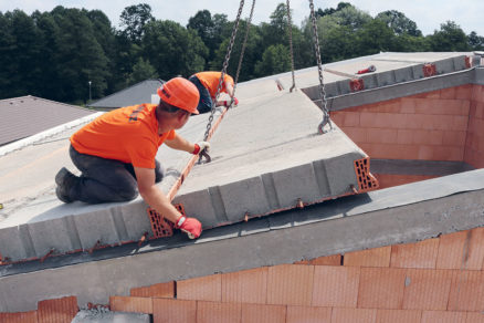 Na zhotovenie šikmej strechy je možné použiť aj keramické stropné panely, ktoré sú vhodné na strechy so sklonom max. 40°, odporúčaný sklon strešnej roviny je 25°. Nosnú konštrukciu strechy tvoria keramické stropné panely, ktoré sa kladú na štítové, obvodové a vnútorné nosné steny.