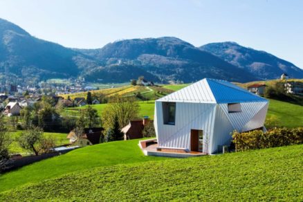Experimentálny dizajn rodinného domu vytvorili architekti zo slovinského ateliéru Scapelab, ktorý pôsobí nielen moderne, ale vďaka starostlivo navrhnutému tvaru má aj funkčný význam. Zošikmené plochy sú vytvorené tak, aby v horúcich letných dňoch, keď je slnko vysoko na oblohe, bránili prieniku svetla cez okná. Naopak, v zime slnko preniká do interiéru, pasívne ho vyhrieva a presvetľuje.