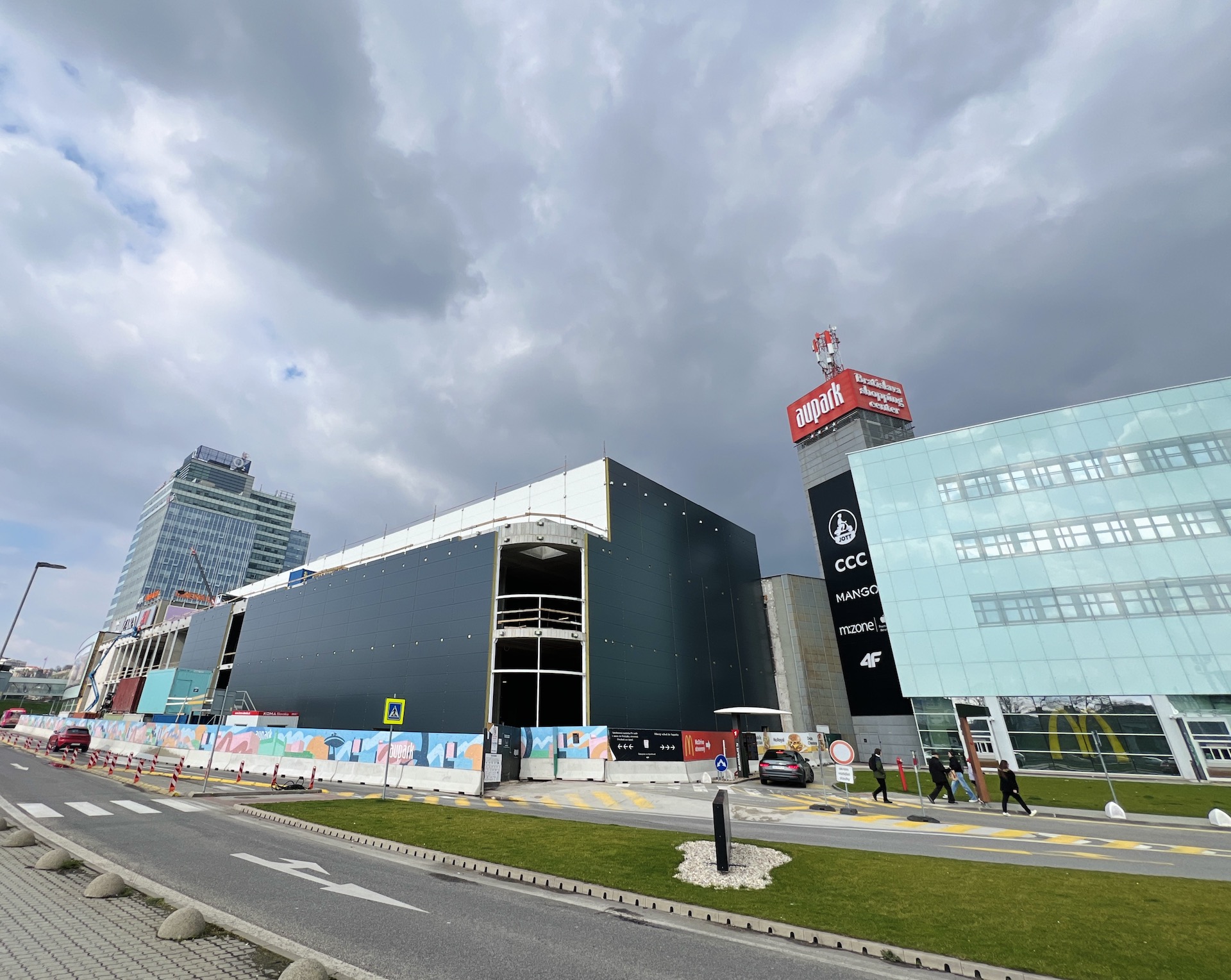Exkluzívna prístavba Auparku rastie a získava fasádu. Návštevník ani nespozná, že vstúpil do prístavby, vraví riaditeľka nákupného centra