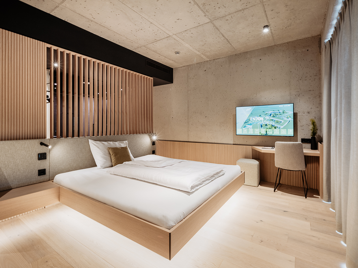 Campus slúži na dennej báze najmä Loxone a školeniu partnerov, ktorí sú ubytovaní priamo v hoteli, ale brány nezatvára ani pred verejnosťou. Je k dispozícii externým firmám aj jednotlivcom, vrátane developerov, projektantov a architektov. Hotel poskytuje ubytovanie pre každého a špičková reštaurácia s rakúskym konceptom Glorious Bastards, známym z Linzu alebo Innsbrucku, ponúka vynikajúce večere. Rovnako aj tam pracujú Slováci, ktorí vás radi obslúžia.